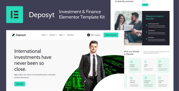 Deposit is a premium template kit built for finance and investment companies, as well as business websites alike. Modern and elegant, this kit offers ample space for you to provide information about your services. Additionally, six pages of different investment services have been included with various section blocks.