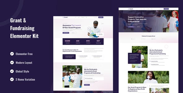 Grant & Fundraising Elementor Template Kit is a collection of layouts for the Elementor page builder WordPress plugin, designed for use with Elementor Free Version for a clean Design. It works with most themes and is optimized for use with the free Hello Elementor theme.