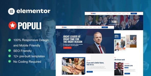 Populi is Elementor Template Kit for Politician website. This template kit will help you to create any website related to politician such as political campaign, senator, public servant and government official. It has 12+ pre-built templates with clean design and modern style.